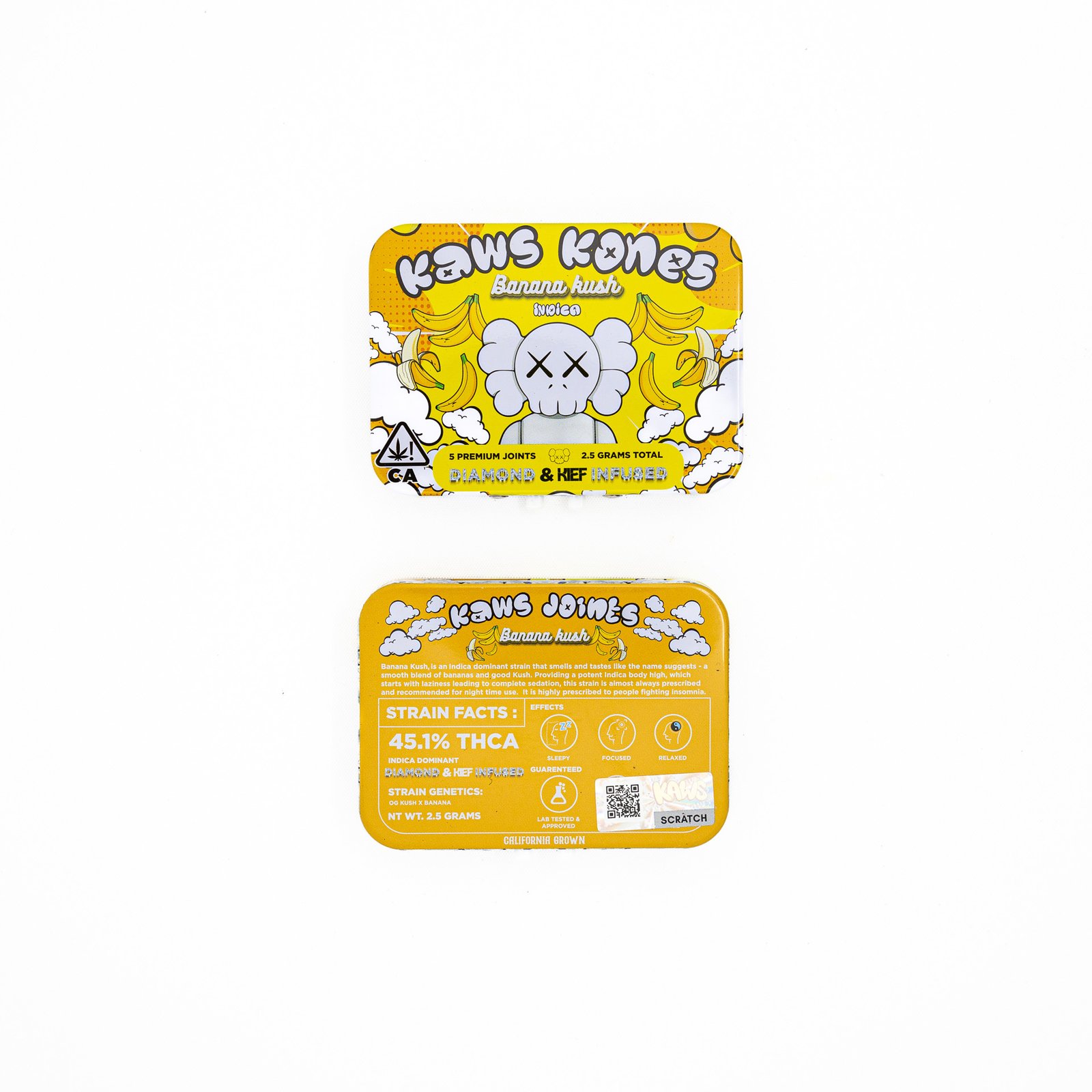 Available for purchase now, Kaws Banana Kush Preroll Joints are a must-try for any cannabis lover looking to elevate their experience.
